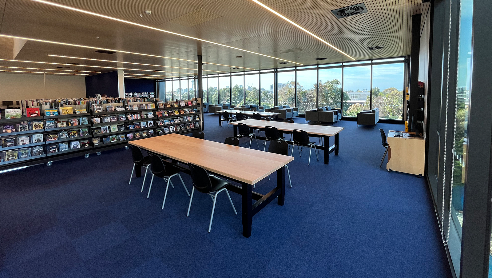 Te Ara boars an extensive fiction and non-fiction collection across two levels, a fully operational computer suite for a full class to use at any one time, two full-sized classrooms and a number of breakout areas for students.